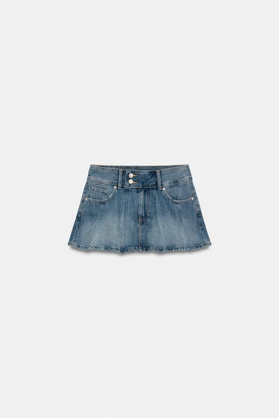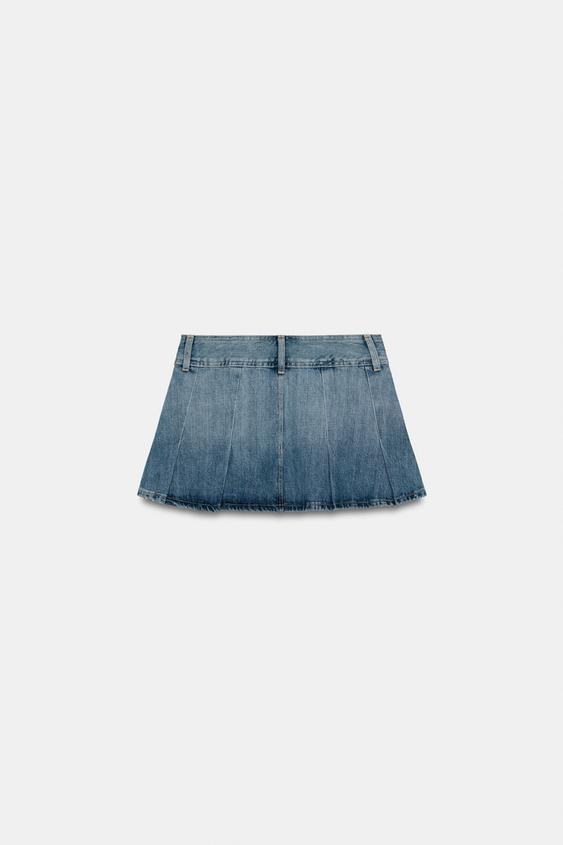 ZARA ДЖИНСОВАЯ МИНИ-ЮБКА TRF В СКЛАДКУ, ГОЛУБОЙ