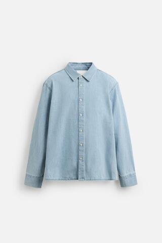 ZARА ДЖИНСОВАЯ РУБАШКА КЛАССИЧЕСКОГО КРОЯ, НЕБЕСНО-ГОЛУБОЙ