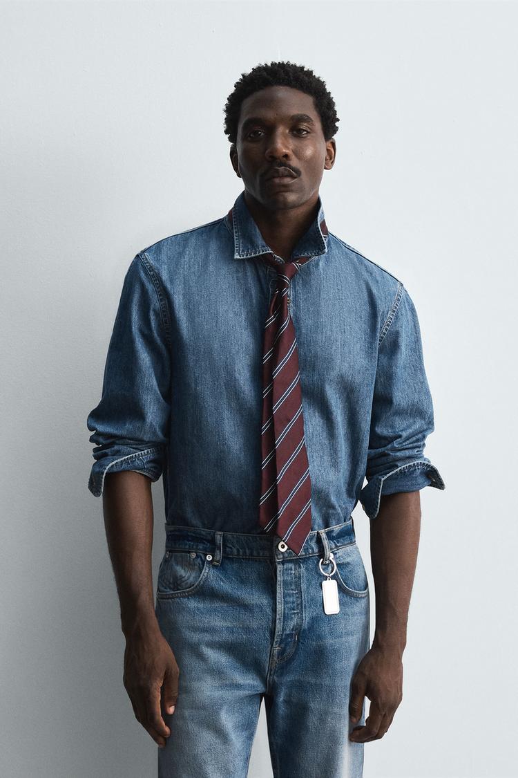 ZARA ДЖИНСОВАЯ РУБАШКА LIMITED EDITION, ВЫЦВЕТШИЙ СИНИЙ