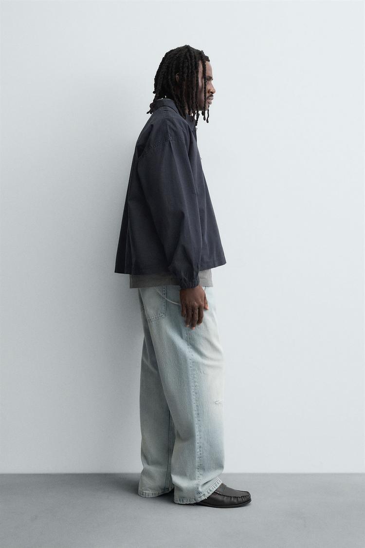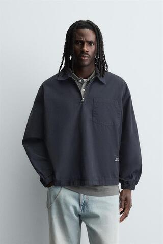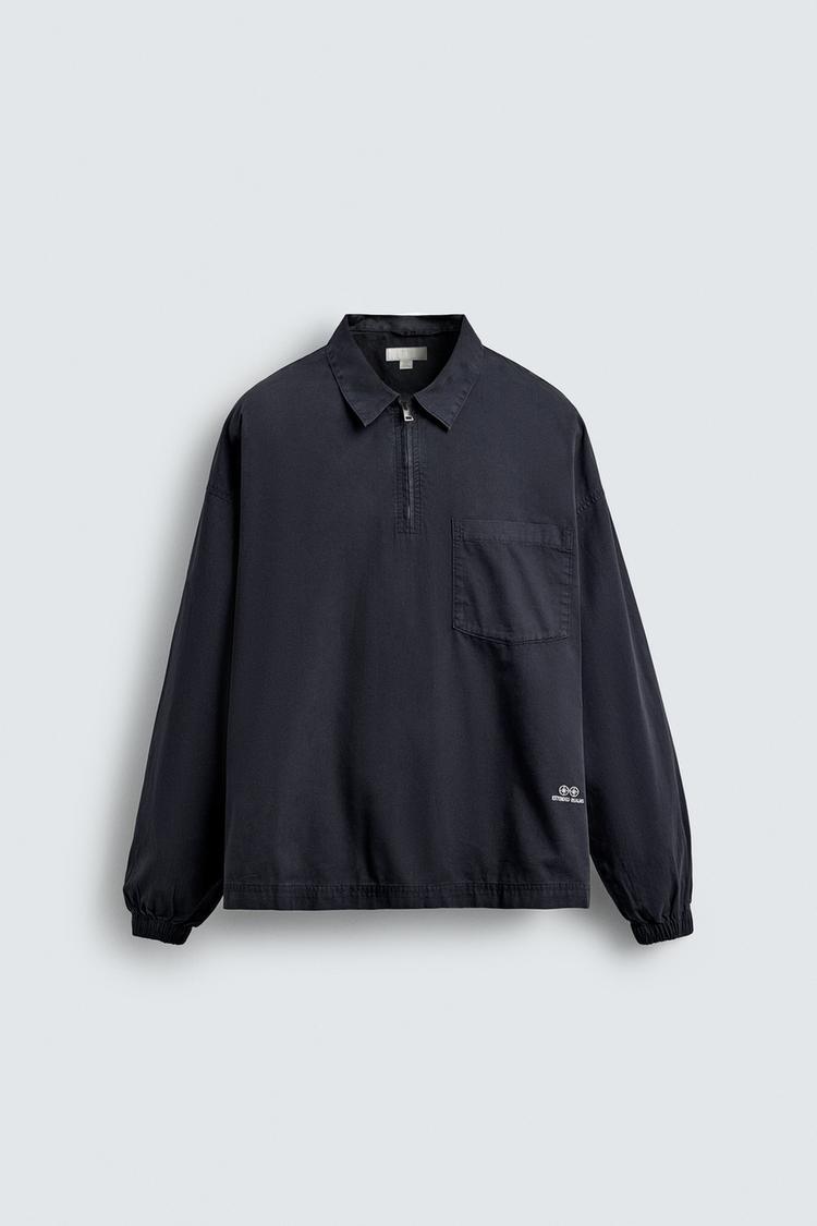 ZARA ДЖИНСОВАЯ РУБАШКА-ПОЛО НА МОЛНИИ, СИНИЙ