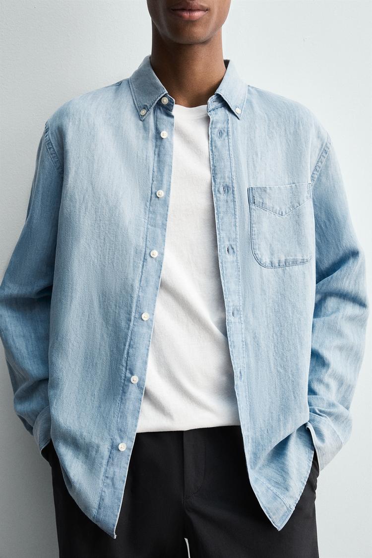 ZARA ДЖИНСОВАЯ РУБАШКА REGULAR FIT, ГОЛУБОЙ