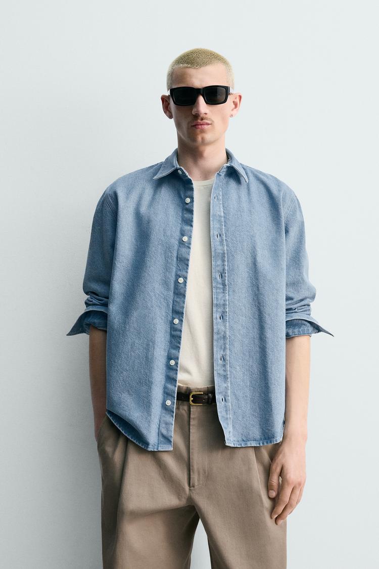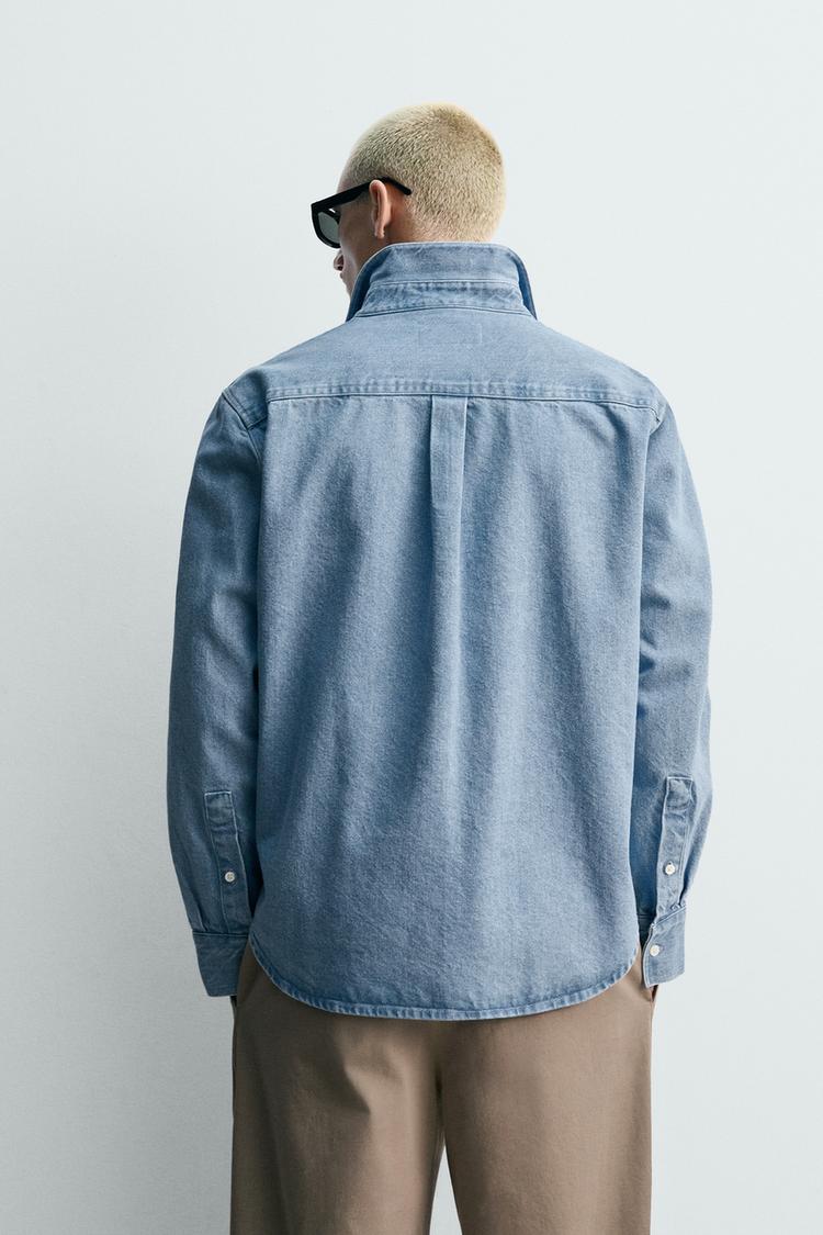 ZARA ДЖИНСОВАЯ РУБАШКА REGULAR FIT С ЭФФЕКТОМ ПОТЕРТОСТИ, ПАСТЕЛЬНО-СИНИЙ