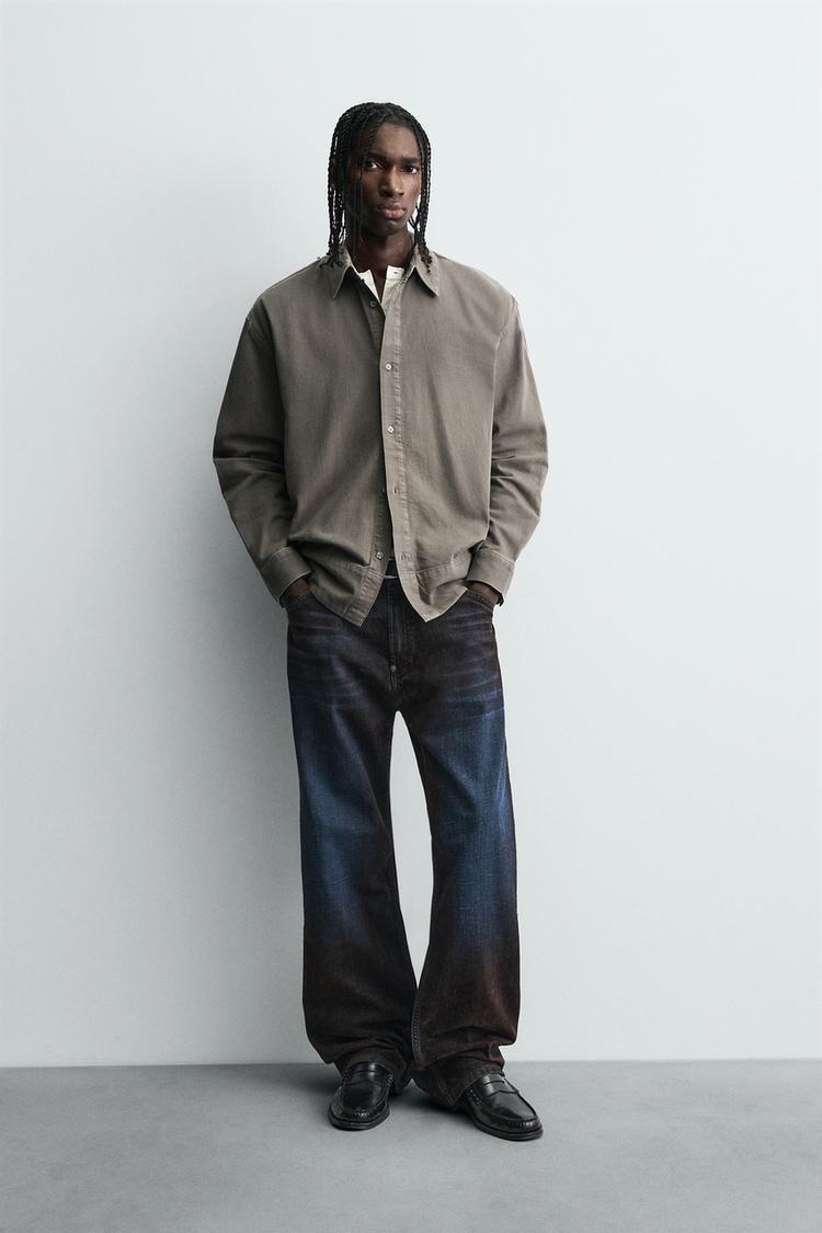 ZARА ДЖИНСОВАЯ РУБАШКА С ЭФФЕКТОМ ПОТЕРТОСТИ, СЕРО-КОРИЧНЕВЫЙ