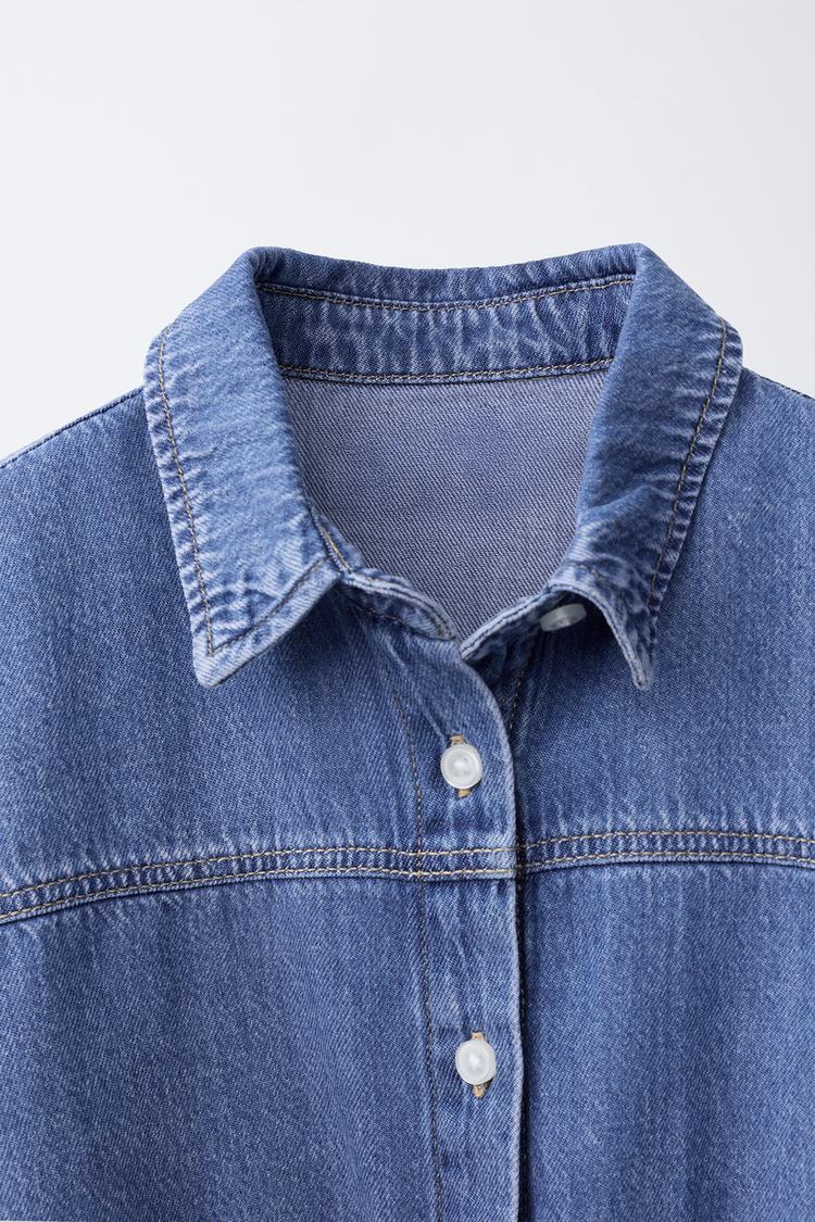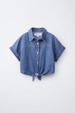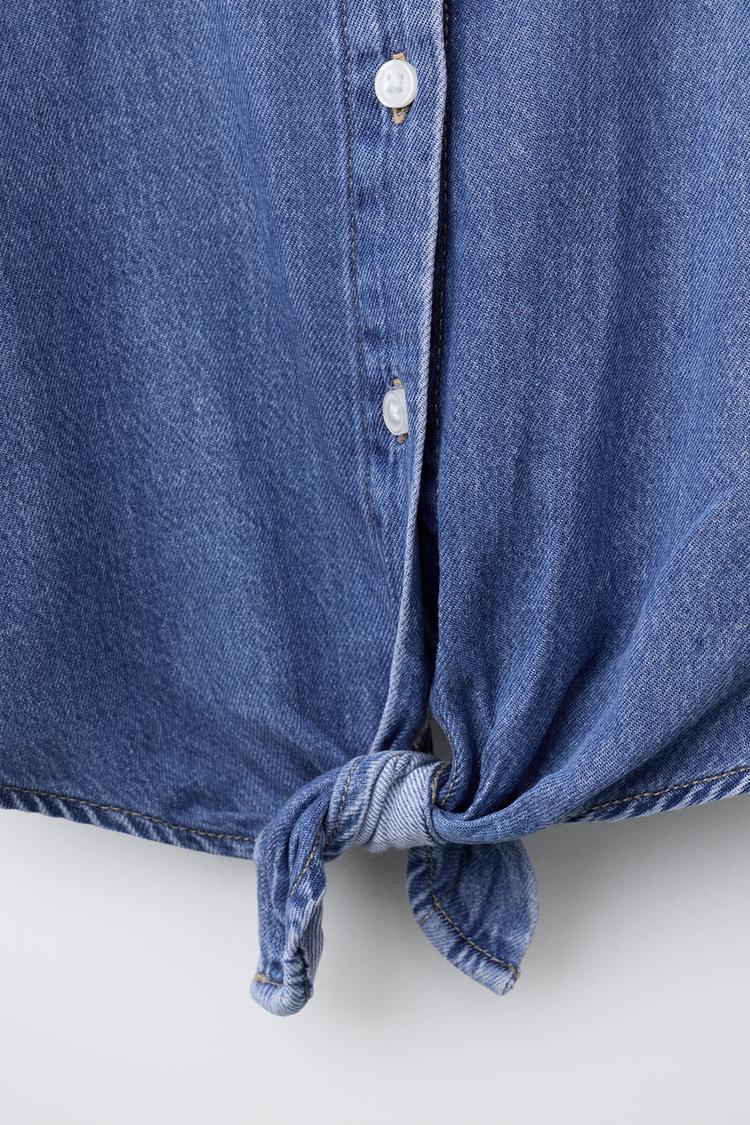 ZARA ДЖИНСОВАЯ РУБАШКА С УЗЛОМ, СИНИЙ