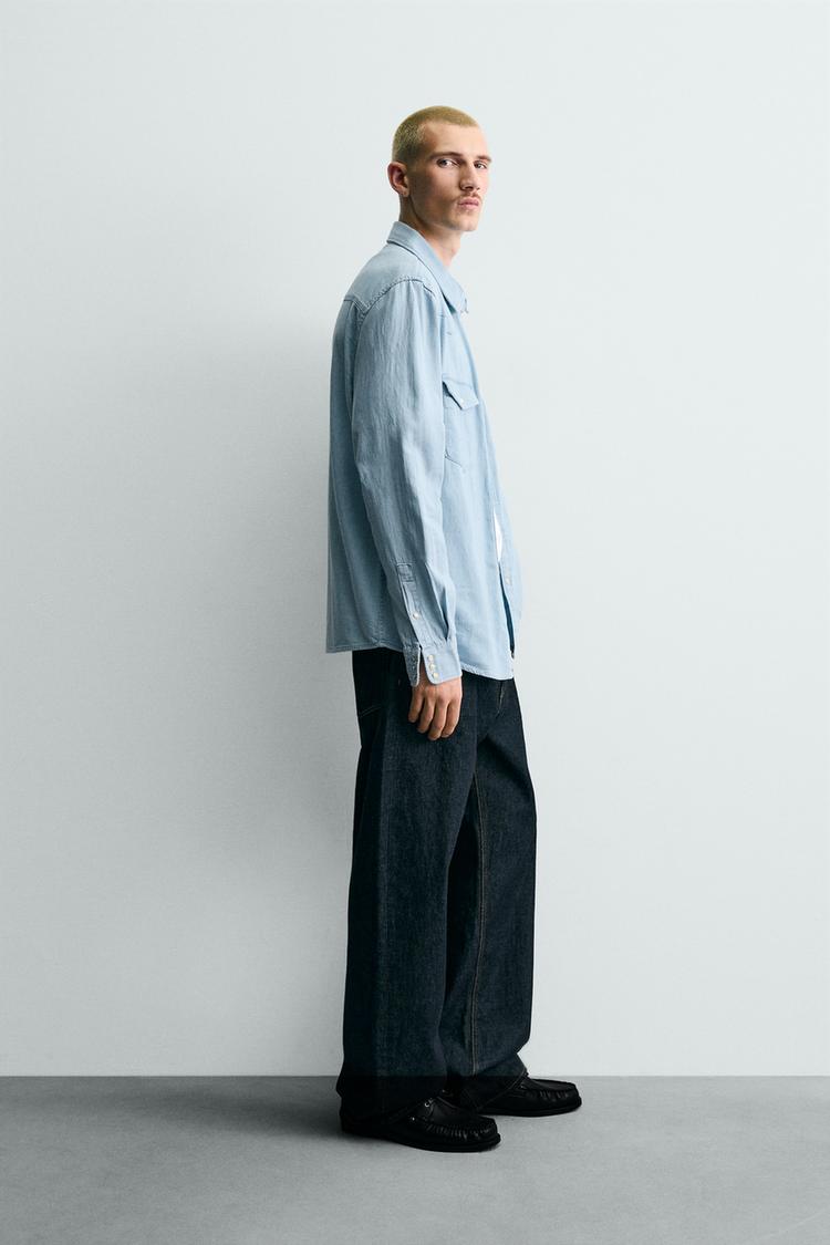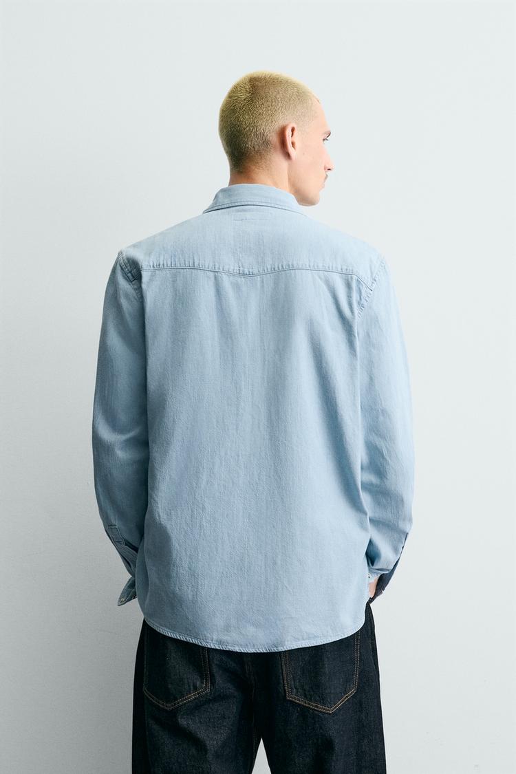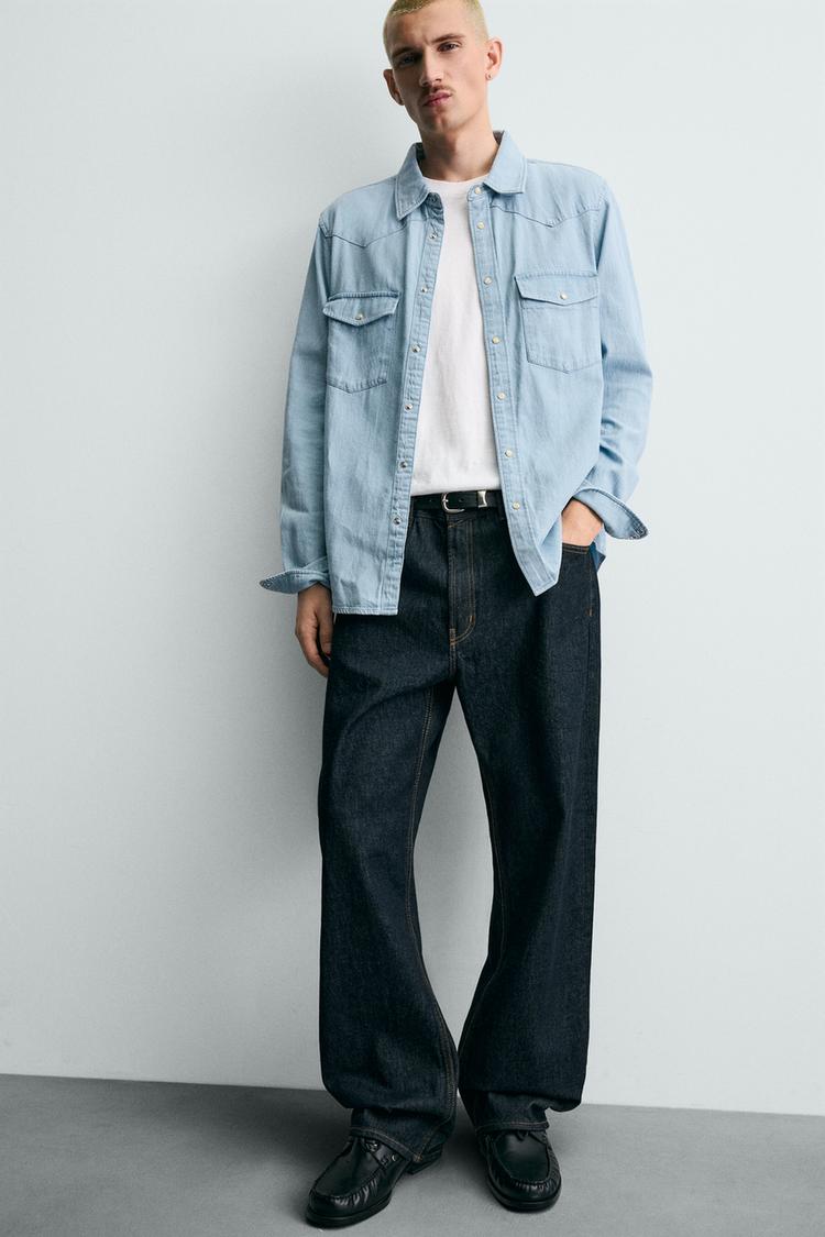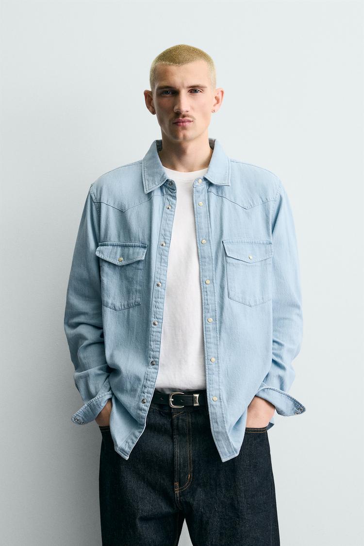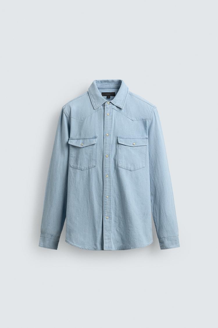 ZARA ДЖИНСОВАЯ РУБАШКА В КОВБОЙСКОМ СТИЛЕ, ГОЛУБОЙ