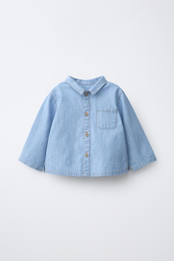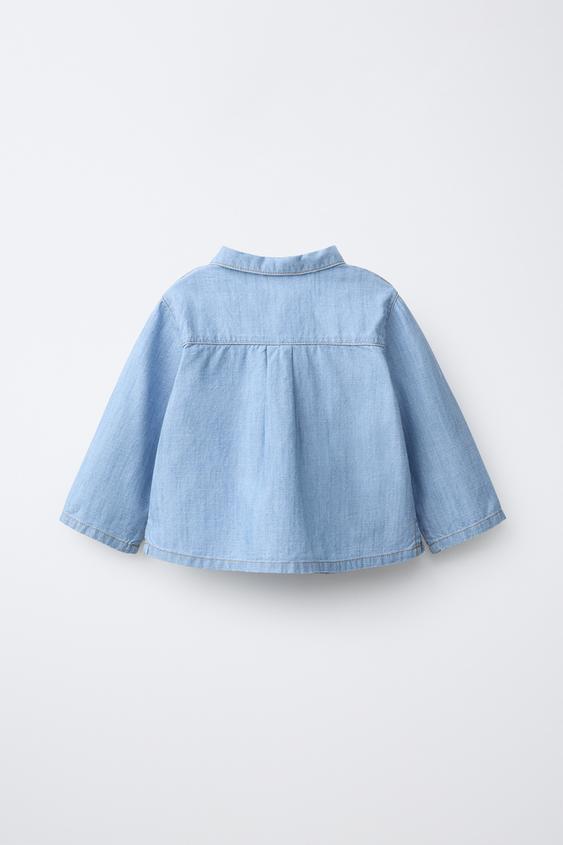 ZARA ДЖИНСОВАЯ РУБАШКА, ВЫЦВЕТШИЙ СИНИЙ