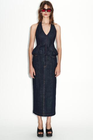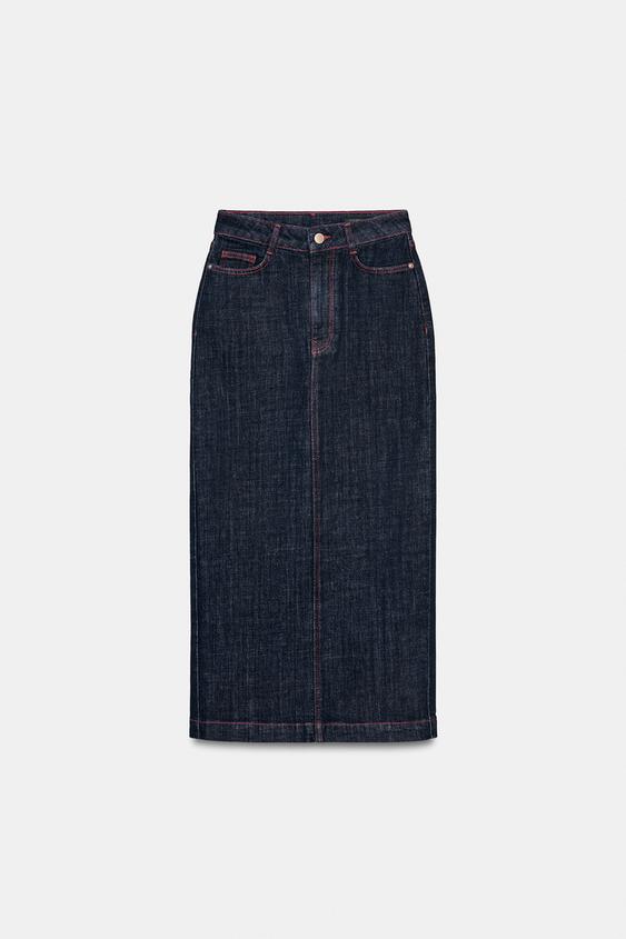 ZARA ДЖИНСОВАЯ ЮБКА МИДИ Z1975, СИНИЙ