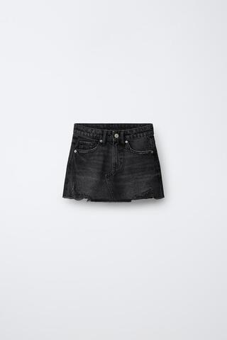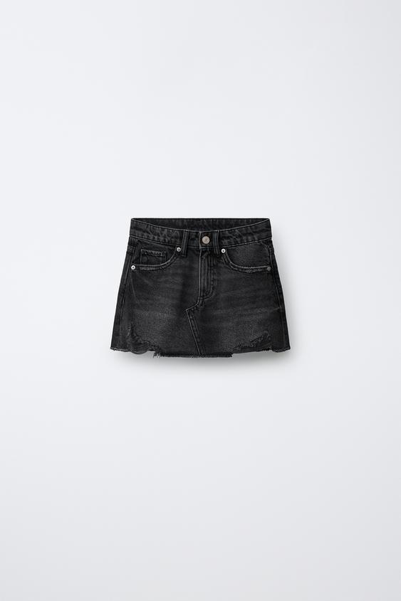 ZARA ДЖИНСОВАЯ ЮБКА С РАЗРЕЗАМИ, ЧЕРНЫЙ