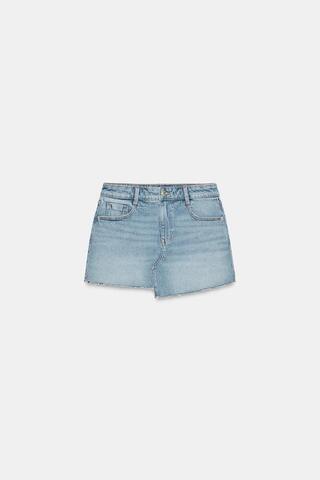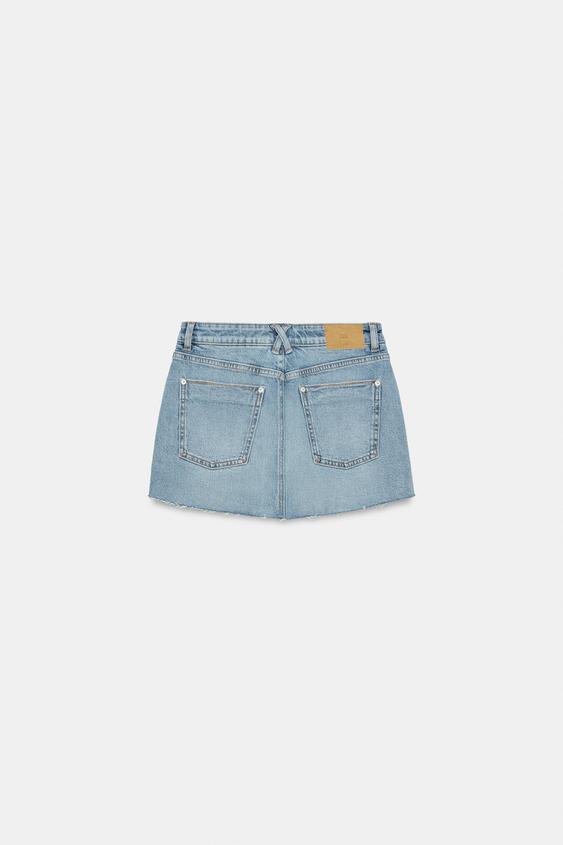 ZARA ДЖИНСОВАЯ ЮБКА-ШОРТЫ Z1975 С НЕОБРАБОТАННЫМ КРАЕМ, ВЫЦВЕТШИЙ СИНИЙ