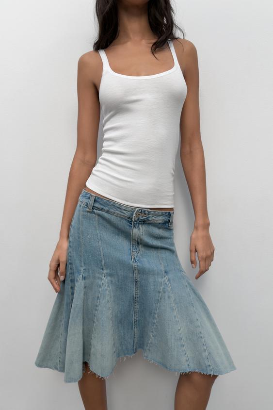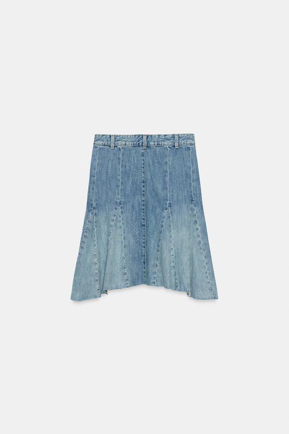 ZARA ДЖИНСОВАЯ ЮБКА TRF С КЛИНЬЯМИ, СИНИЙ
