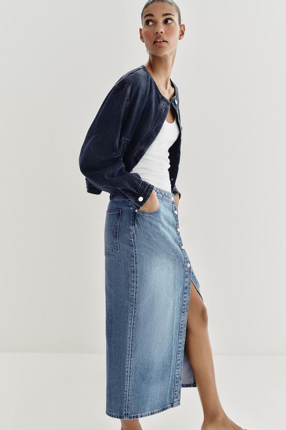 ZARA ДЖИНСОВАЯ ЮБКА ВНАХЛЕСТ Z1975, ВЫЦВЕТШИЙ СИНИЙ