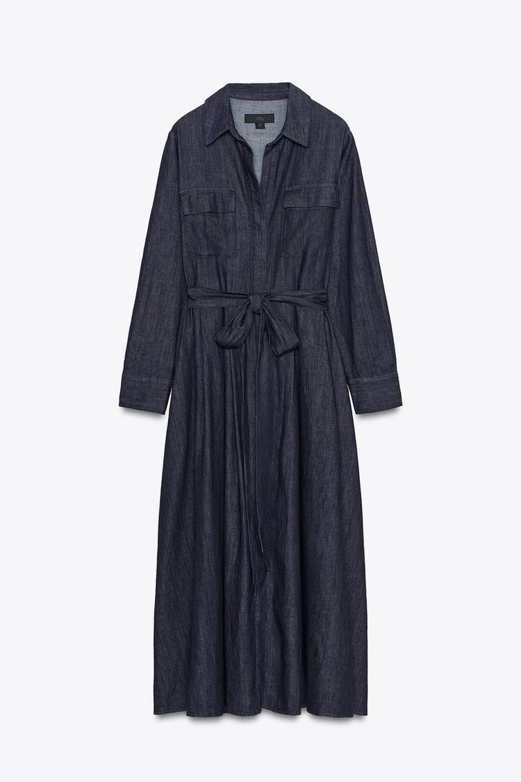 ZARA ДЖИНСОВОЕ ПЛАТЬЕ С ПОЯСОМ — ZW COLLECTION, СИНИЙ
