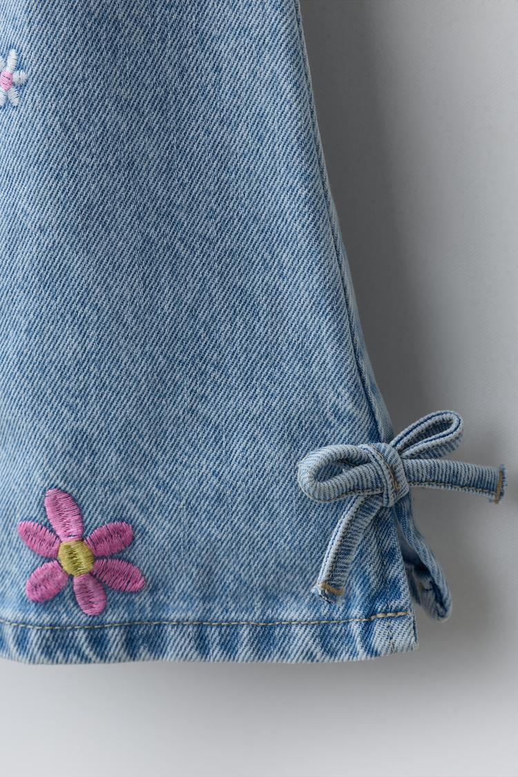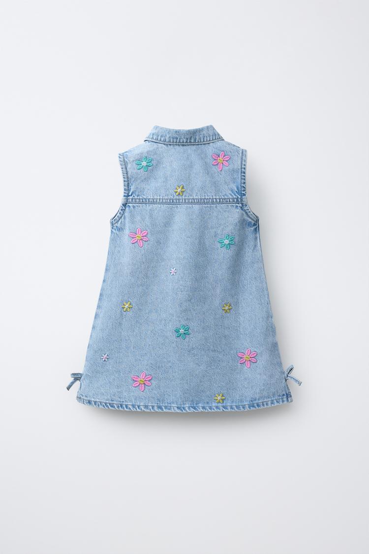 ZARA ДЖИНСОВОЕ ПЛАТЬЕ С ВЫШИВКОЙ,СИНИЙ