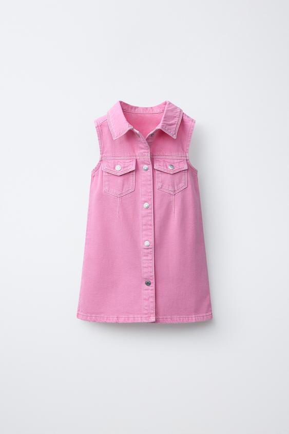 ZARA ДЖИНСОВОЕ ПЛАТЬЕ-СКЕЙТЕР, РОЗОВЫЙ