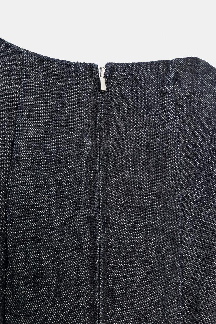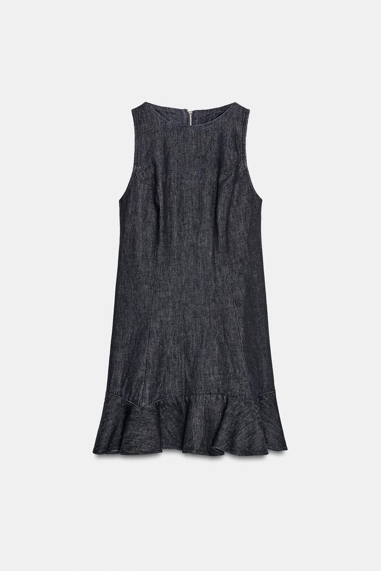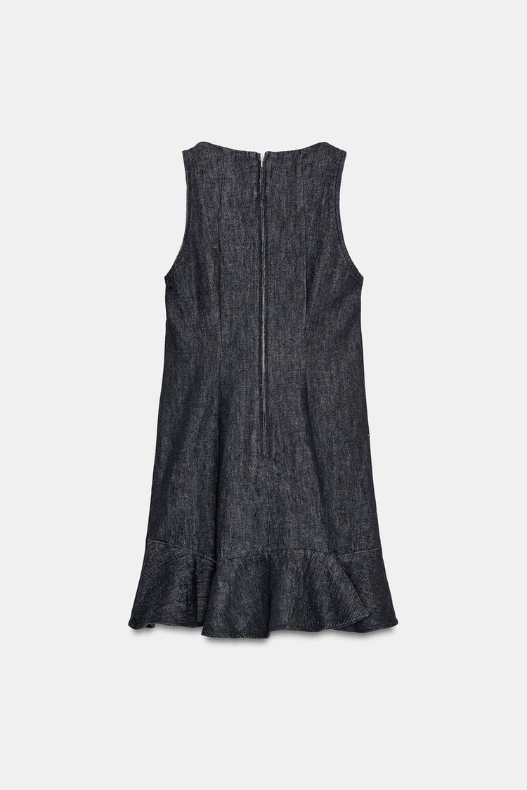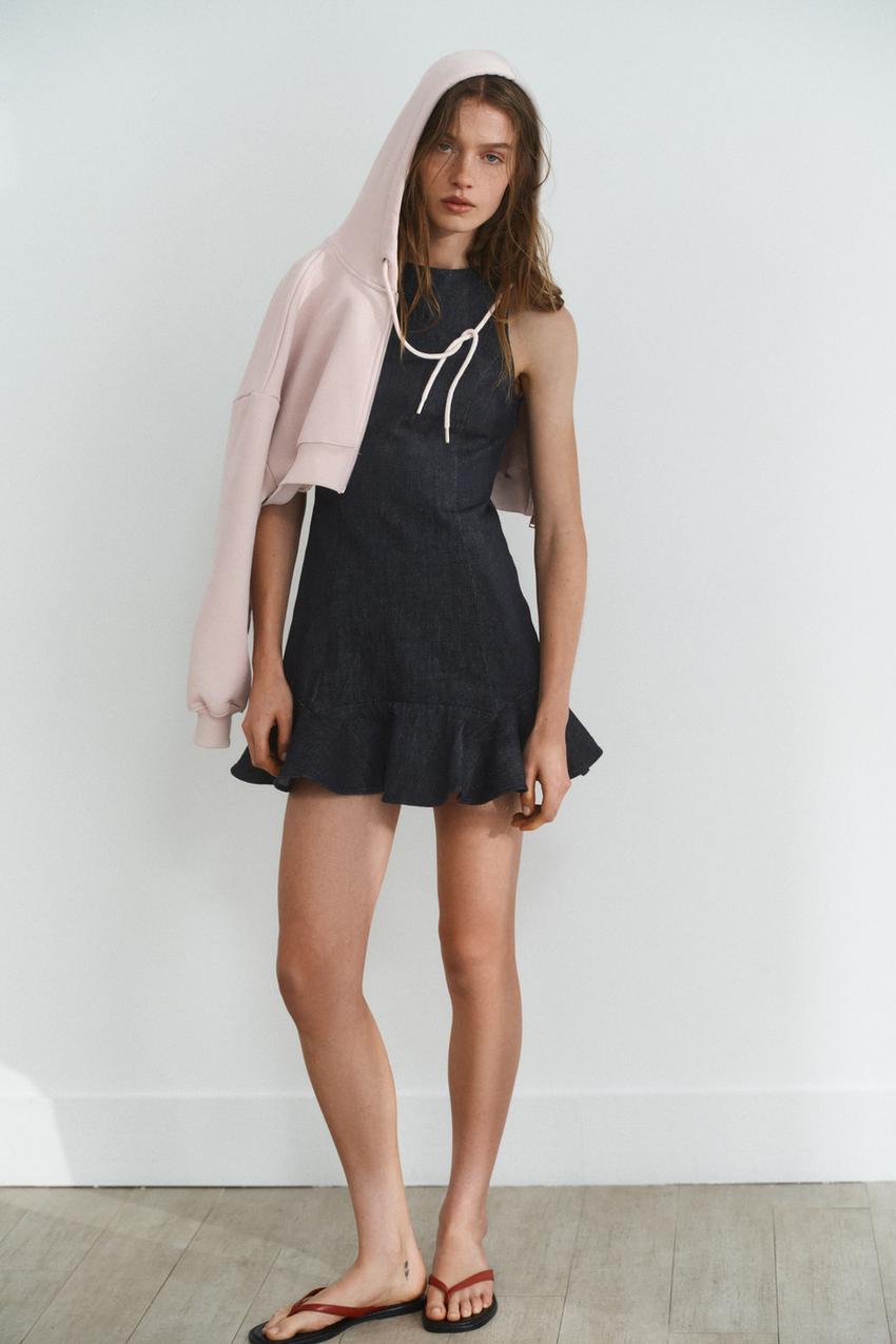 ZARA ДЖИНСОВОЕ ПЛАТЬЕ TRF С ВОЛАНАМИ, ТЕМНЫЙ ИНДИГО