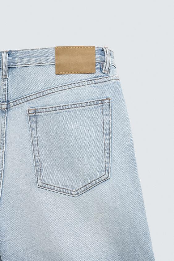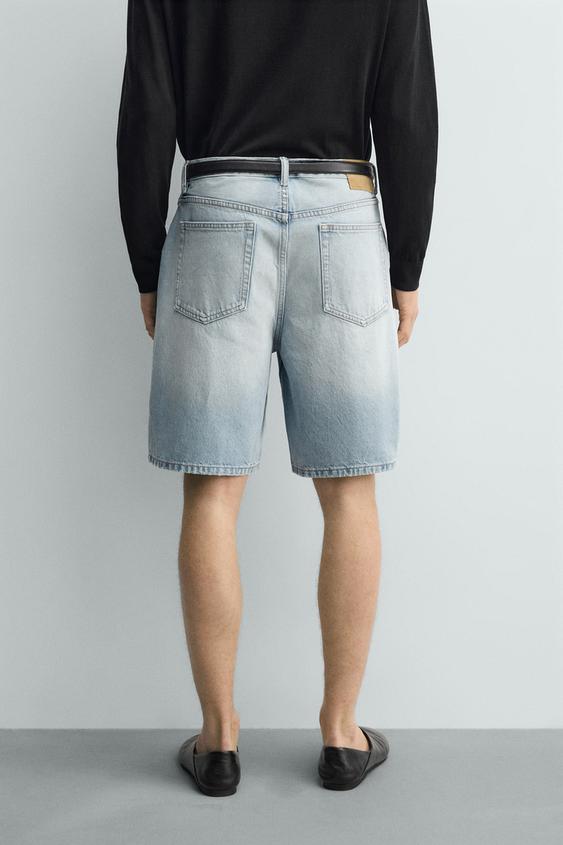 ZARA ДЖИНСОВЫЕ БЕРМУДЫ STRAIGHT FIT, ГОЛУБОЙ