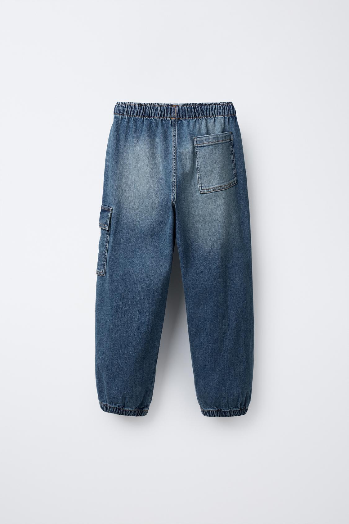 ZARA ДЖИНСОВЫЕ БРЮКИ-ДЖОГГЕРЫ КАРГО, ВЫЦВЕТШИЙ СИНИЙ