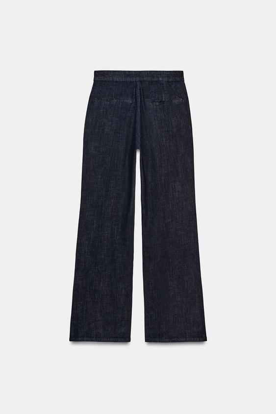 ZARA ДЖИНСОВЫЕ БРЮКИ С ВЫСОКОЙ ПОСАДКОЙ, ТЕМНЫЙ ИНДИГО