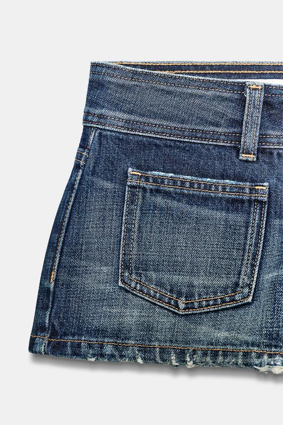 ZARA ДЖИНСОВЫЕ МИНИ-ШОРТЫ TRF С НИЗКОЙ ПОСАДКОЙ, МОРСКОЙ СИНИЙ