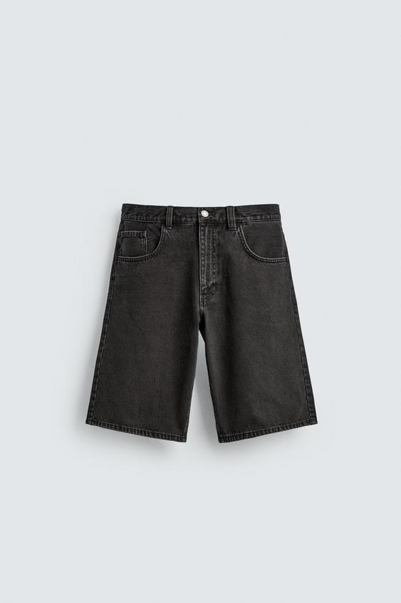 ZARA ДЖИНСОВЫЕ ШОРТЫ BAGGY FIT, УГОЛЬНЫЙ