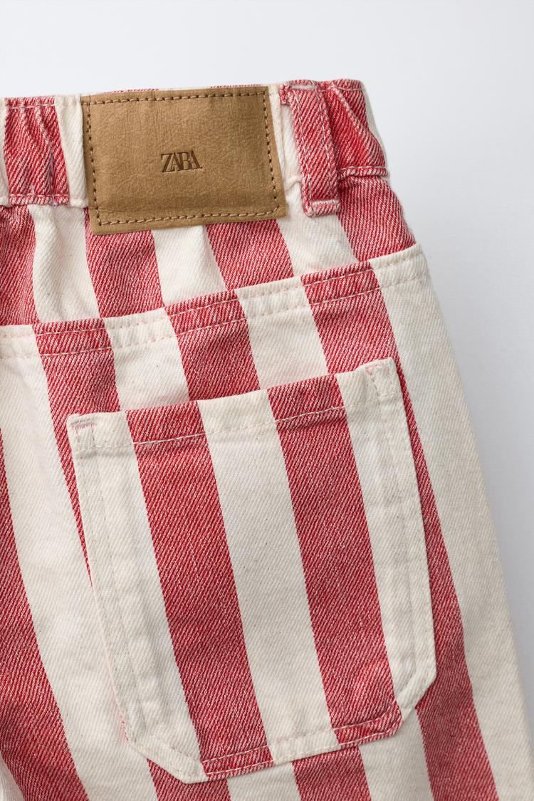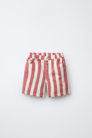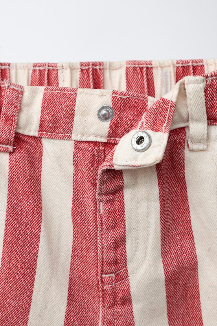 ZARA ДЖИНСОВЫЕ ШОРТЫ BAGGY В ПОЛОСКУ, КРАСНЫЙ