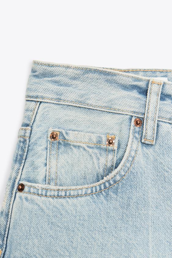 ZARА ДЖИНСОВЫЕ ШОРТЫ-БЕРМУДЫ TRF С ДЫРАМИ И СРЕДНЕЙ ПОСАДКОЙ, СИНИЙ