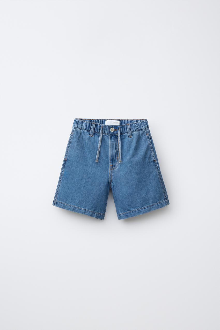 ZARA ДЖИНСОВЫЕ ШОРТЫ ИЗ СМЕСОВОГО ЛЬНА И ХЛОПКА, СИНИЙ