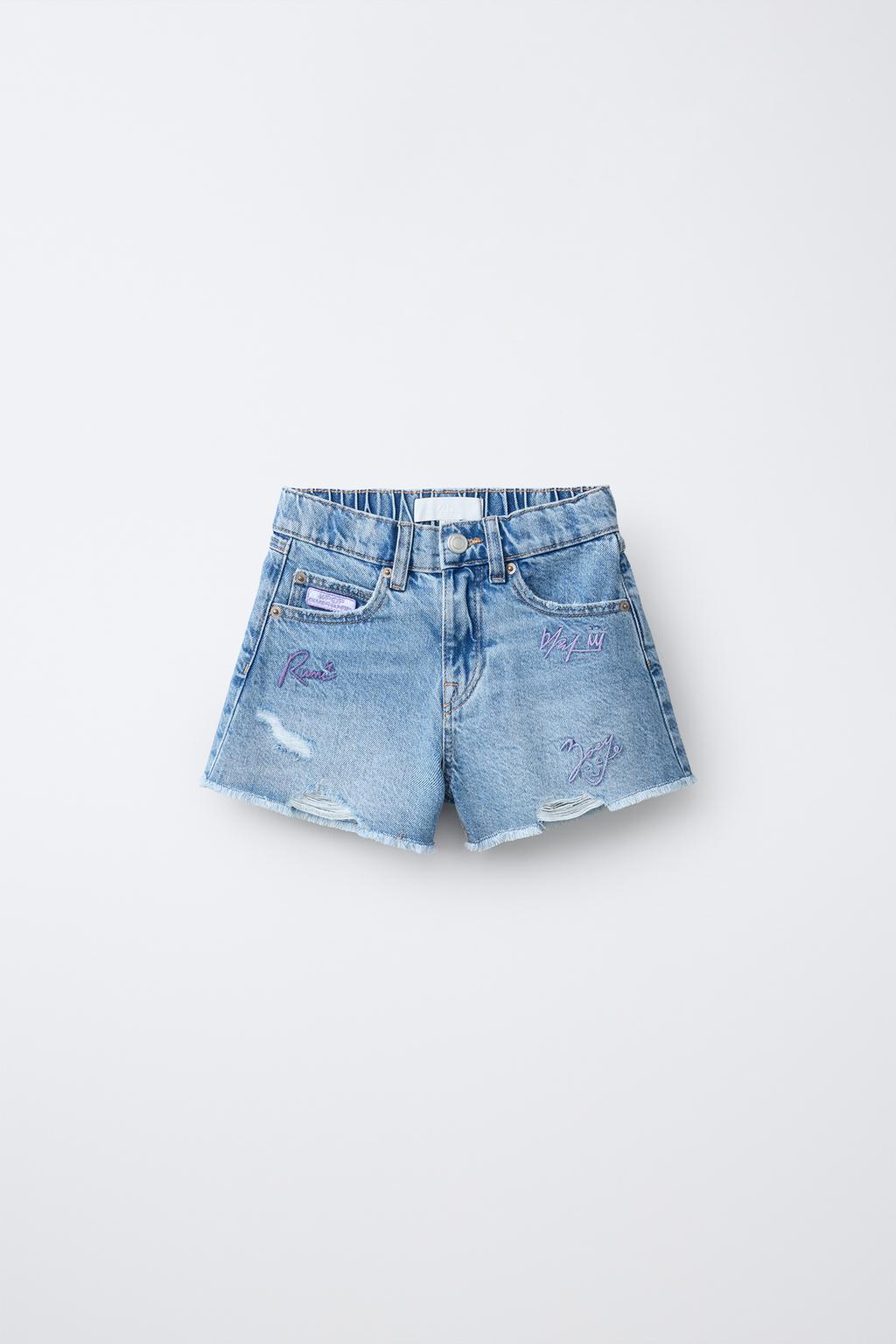 ZARA ДЖИНСОВЫЕ ШОРТЫ KPOP DEMON HUNTERS™ NETFLIX ©, СИНИЙ