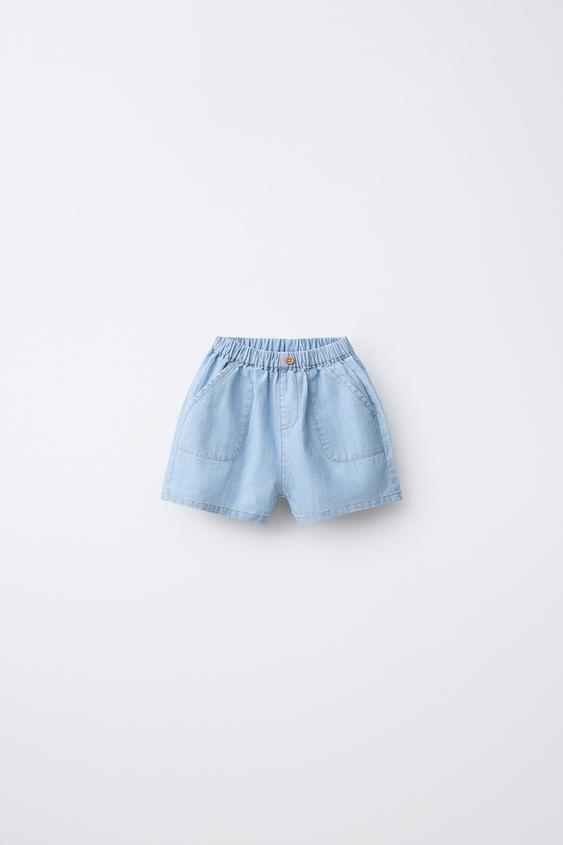 ZARA ДЖИНСОВЫЕ ШОРТЫ С КАРМАНАМИ, ВЫЦВЕТШИЙ СИНИЙ