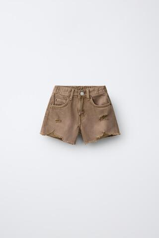 ZARA ДЖИНСОВЫЕ ШОРТЫ С РАЗРЕЗАМИ, КОРИЧНЕВЫЙ