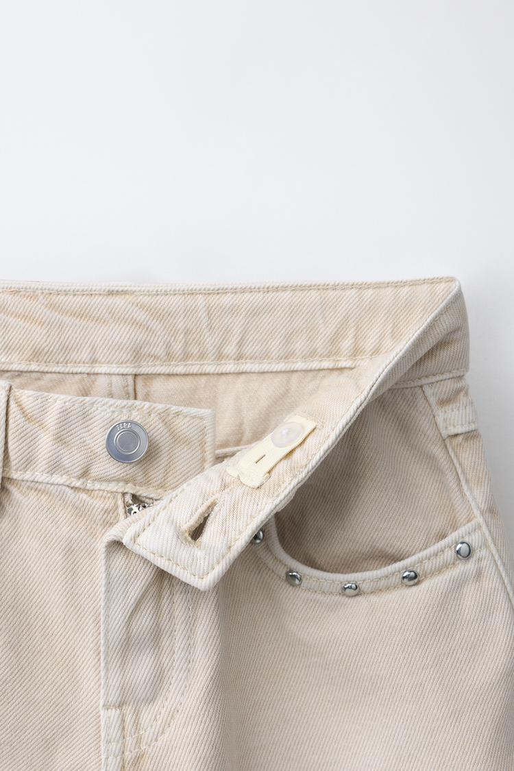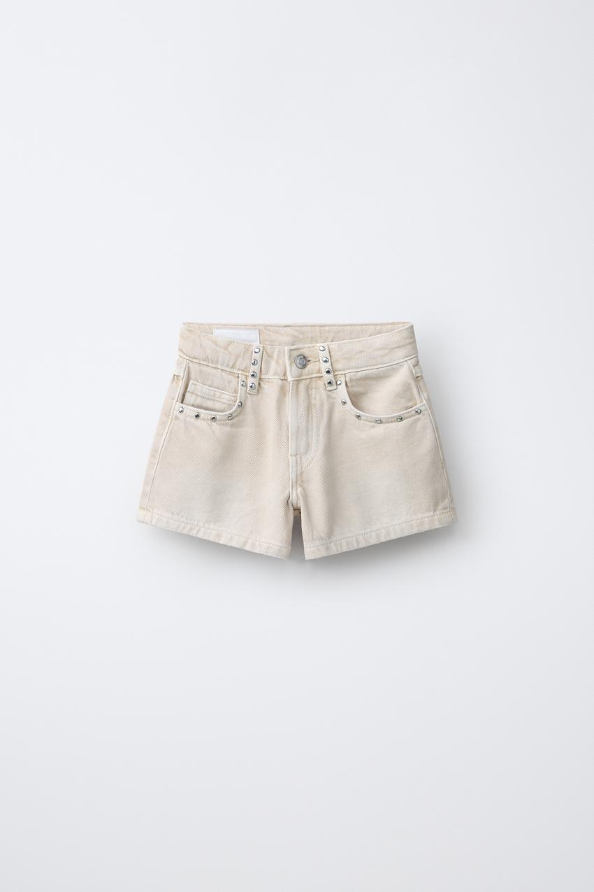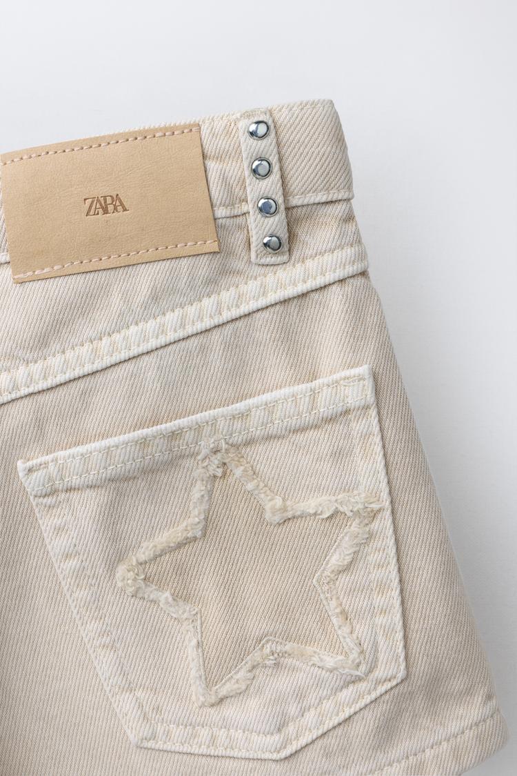 ZARA ДЖИНСОВЫЕ ШОРТЫ С ЗАКЛЕПКАМИ И ЗВЕЗДАМИ, ЭКРЮ
