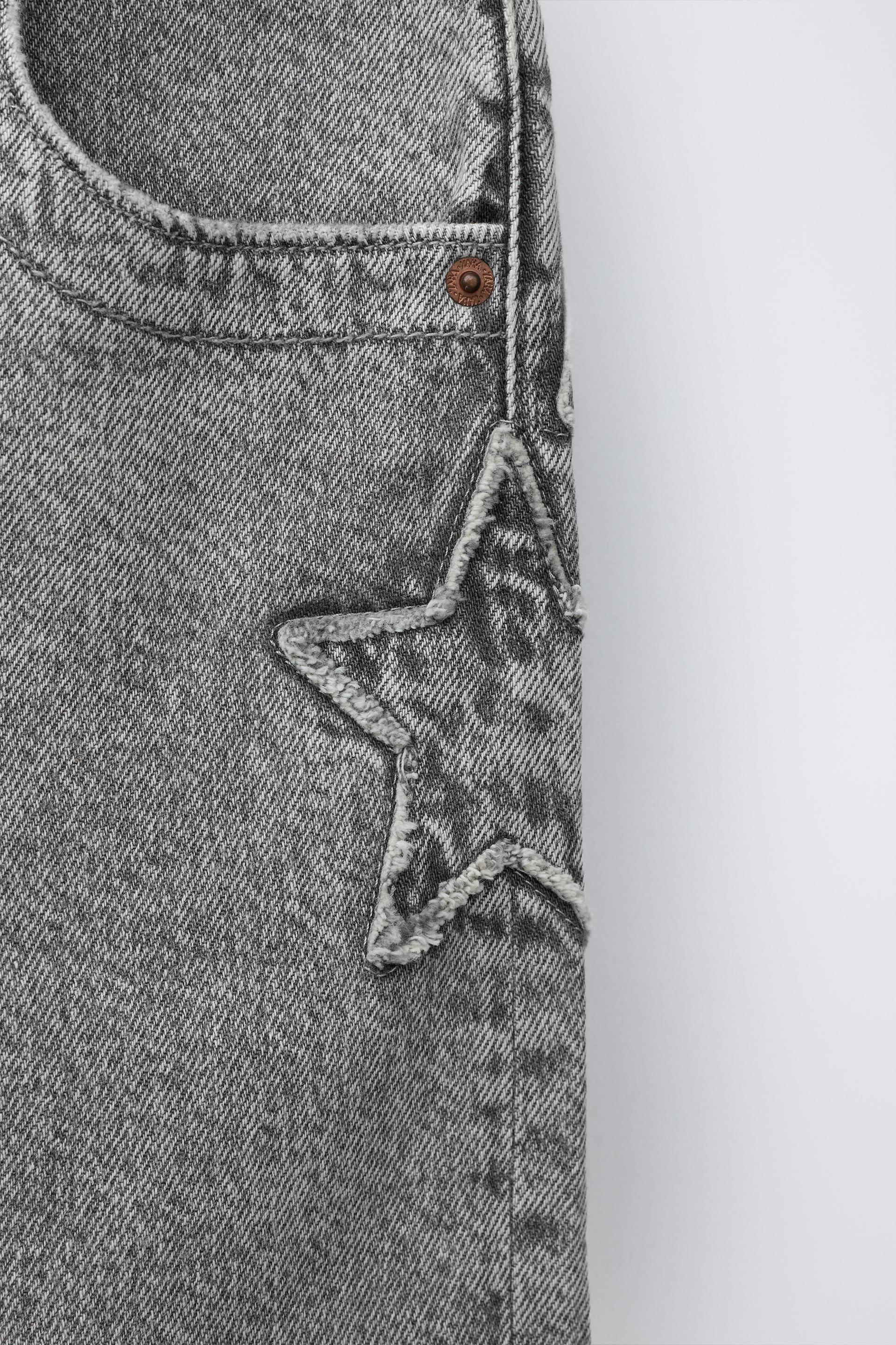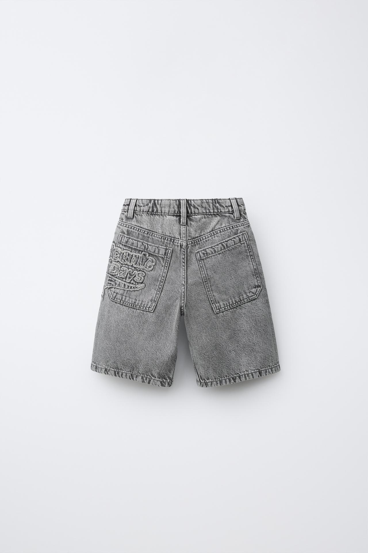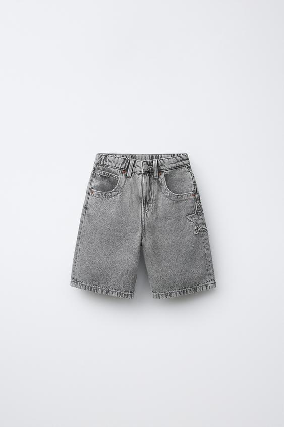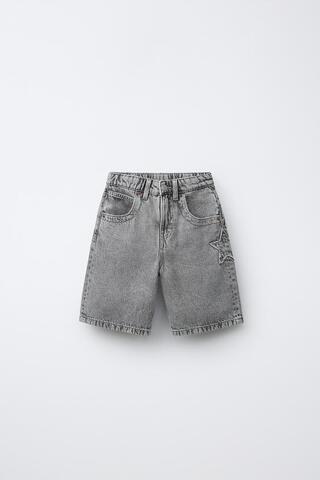 ZARA ДЖИНСОВЫЕ ШОРТЫ СО ЗВЕЗДОЙ И НАДПИСЬЮ, МЯГКИЙ СЕРЫЙ