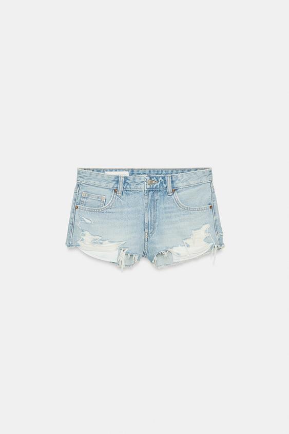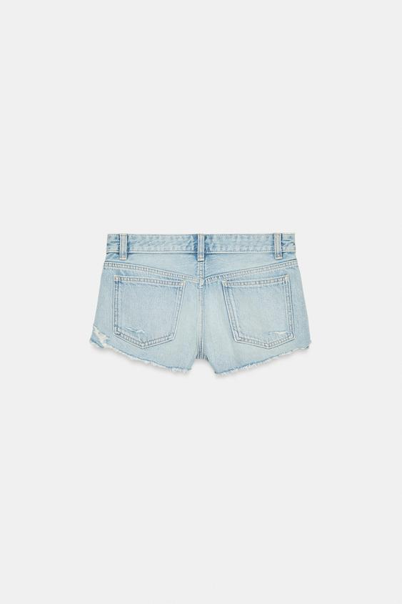 ZARA ДЖИНСОВЫЕ ШОРТЫ TRF С РАЗРЕЗАМИ И СРЕДНЕЙ ПОСАДКОЙ, ГОЛУБОЙ