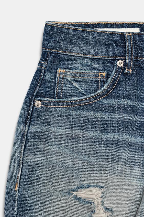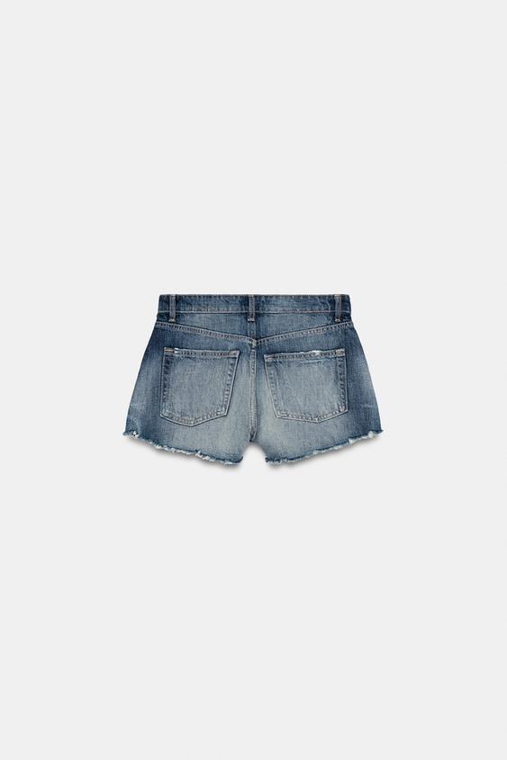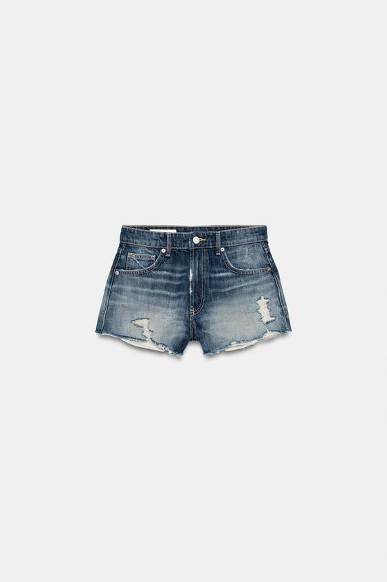 ZARA ДЖИНСОВЫЕ ШОРТЫ TRF С ВЫСОКОЙ ПОСАДКОЙ И РАЗРЫВАМИ, МОРСКОЙ СИНИЙ