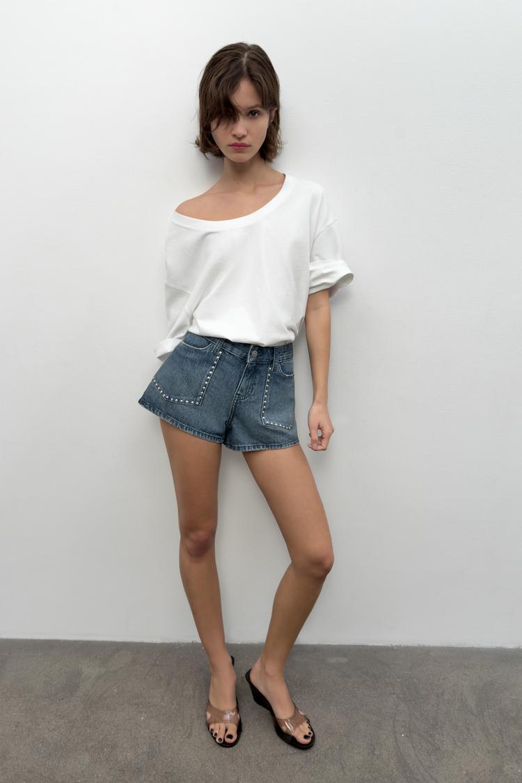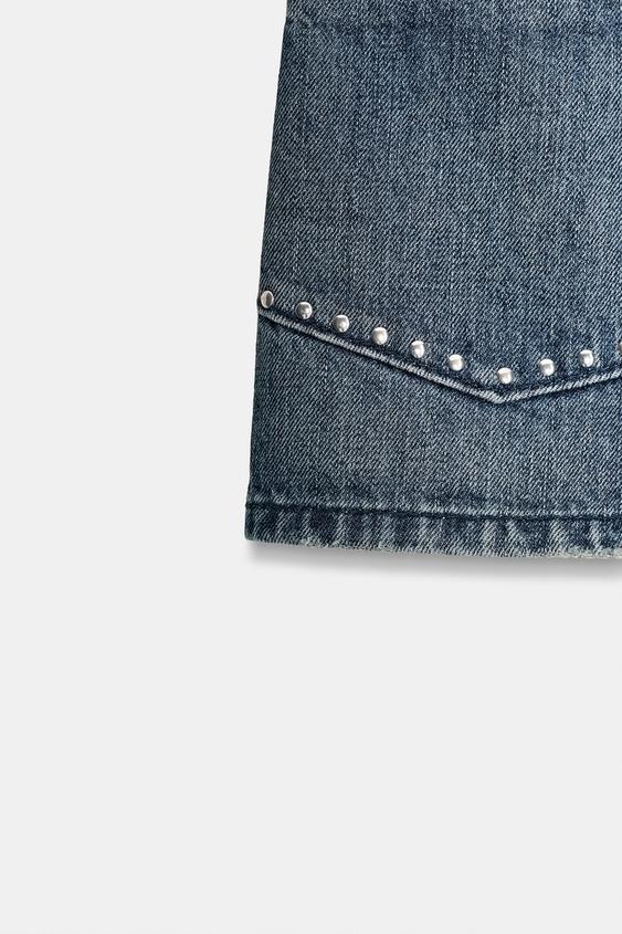 ZARA ДЖИНСОВЫЕ ШОРТЫ TRF С ЗАКЛЕПКАМИ, СИНИЙ