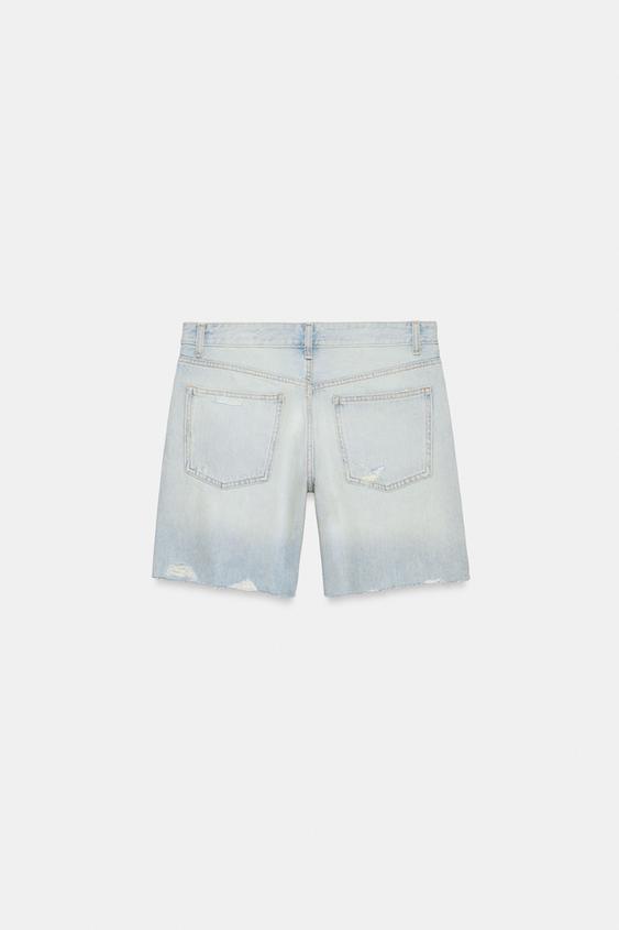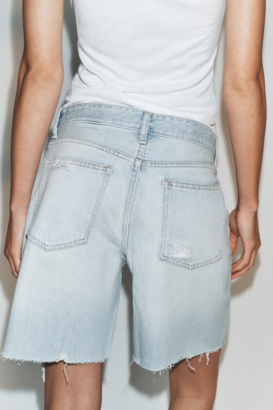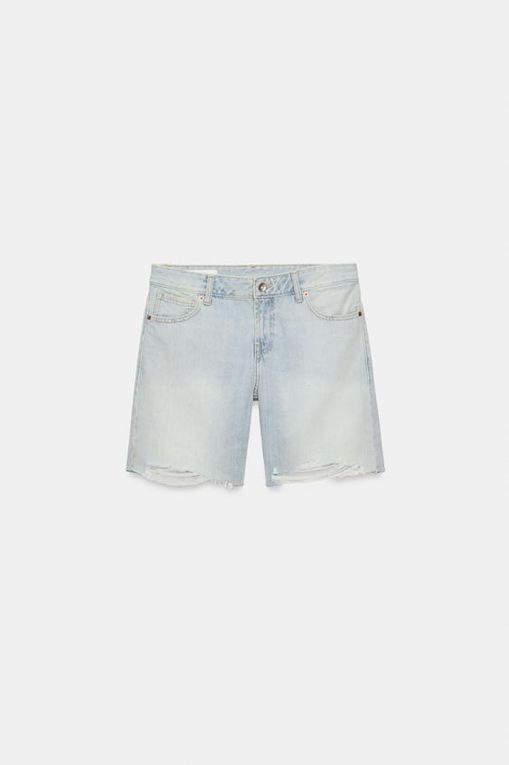 ZARA ДЖИНСОВЫЕ ШОРТЫ TRF СО СРЕДНЕЙ ПОСАДКОЙ, ГОЛУБОЙ