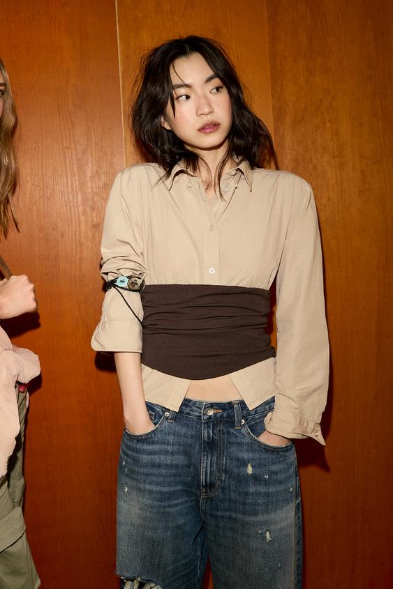 ZARA ДЖИНСОВЫЕ ШОРТЫ TRF СО СРЕДНЕЙ ПОСАДКОЙ И РАЗРЕЗАМИ, ГОЛУБОЙ