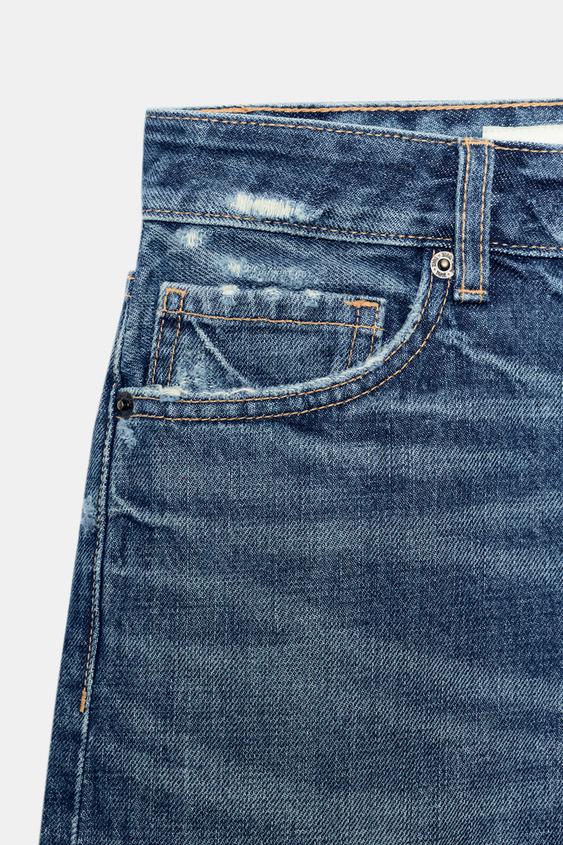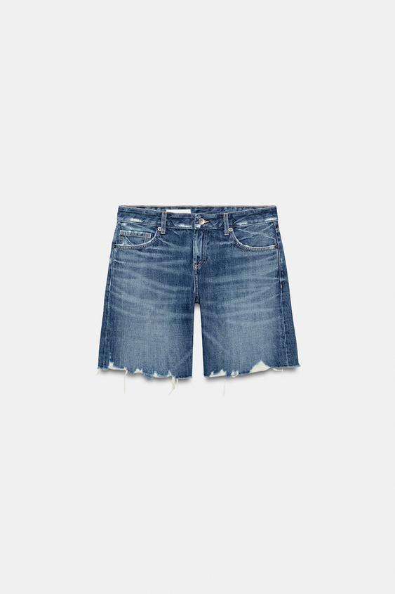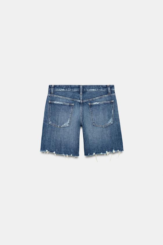 ZARA ДЖИНСОВЫЕ ШОРТЫ TRF СО СРЕДНЕЙ ПОСАДКОЙ, МОРСКОЙ СИНИЙ
