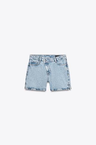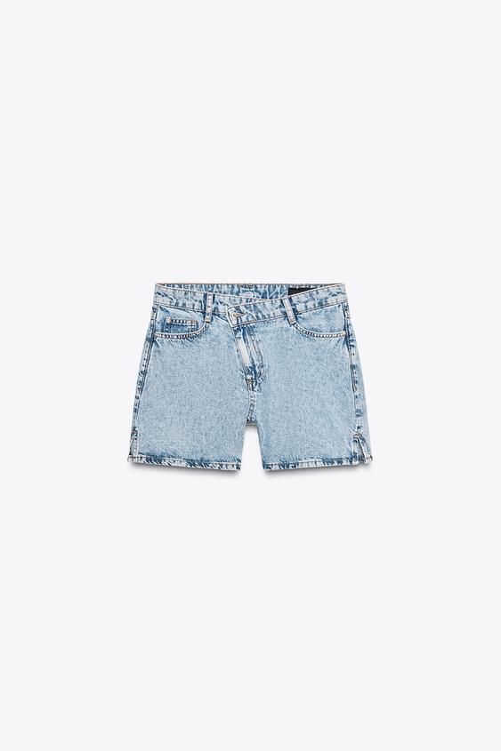 ZARА ДЖИНСОВЫЕ ШОРТЫ Z1975 С ВЫСОКОЙ ПОСАДКОЙ И ПЕРЕКРЕСТНОЙ ТАЛИЕЙ, ГОЛУБОЙ