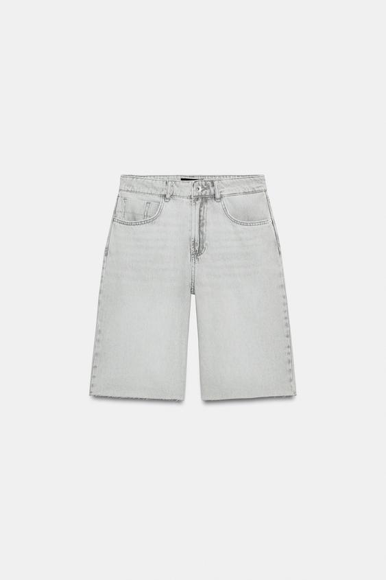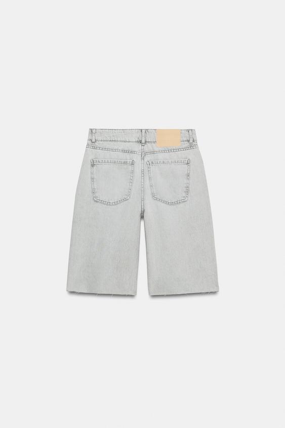 ZARA ДЖИНСОВЫЕ ШОРТЫ Z1975 СО СРЕДНЕЙ ПОСАДКОЙ, СВЕТЛО-СЕРЫЙ