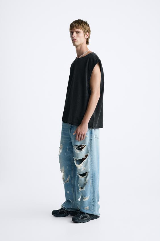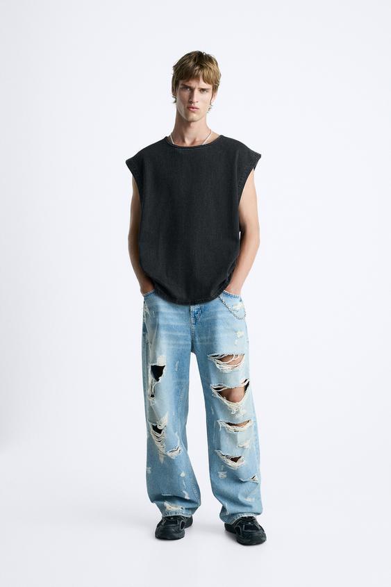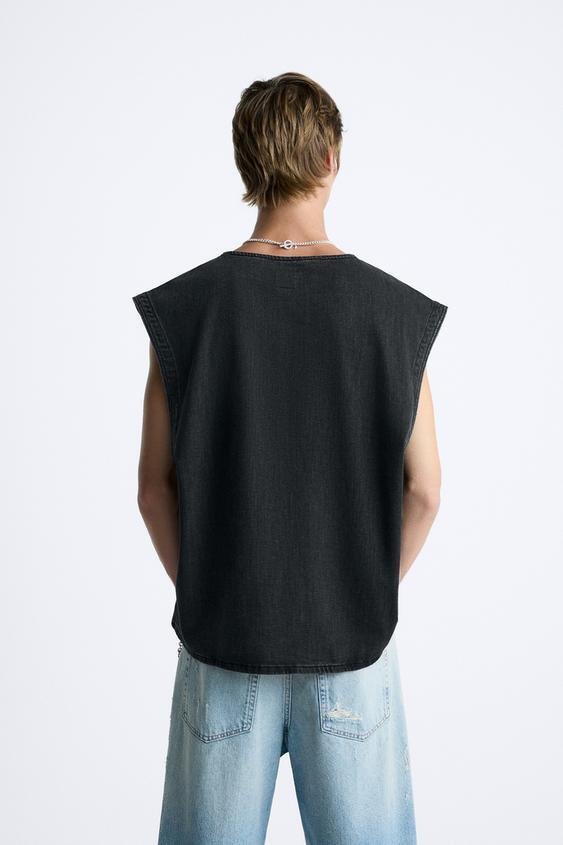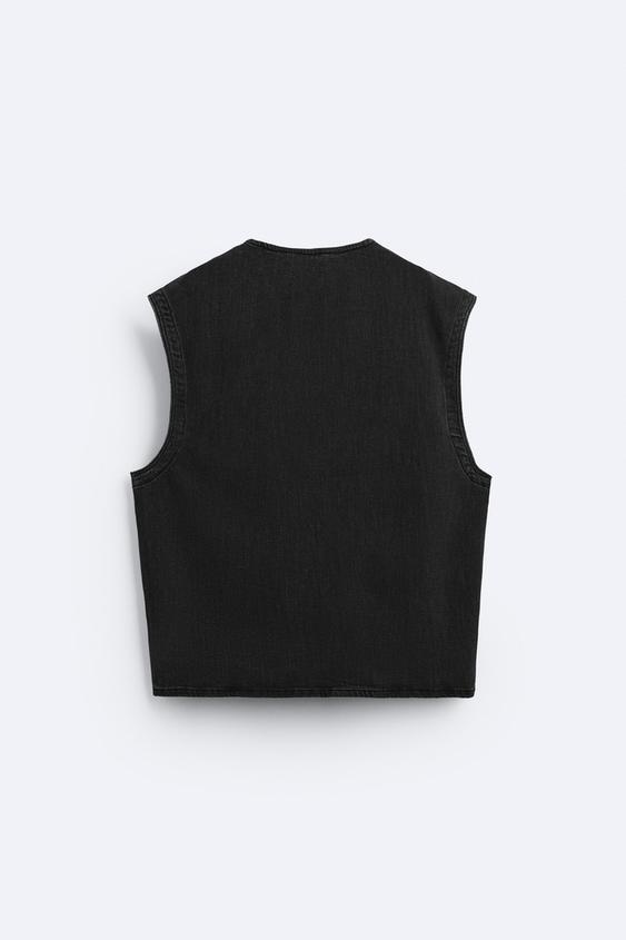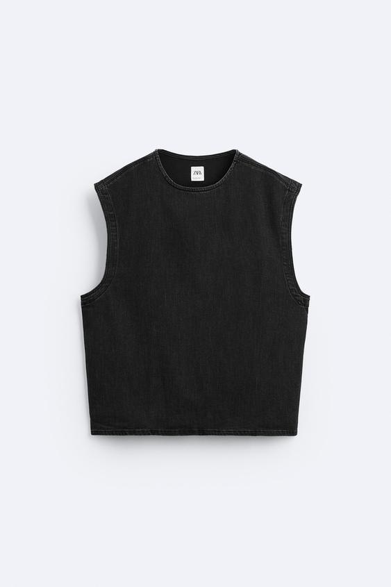 ZARA ДЖИНСОВЫЙ ТОП БЕЗ РУКАВОВ, ЧЕРНЫЙ