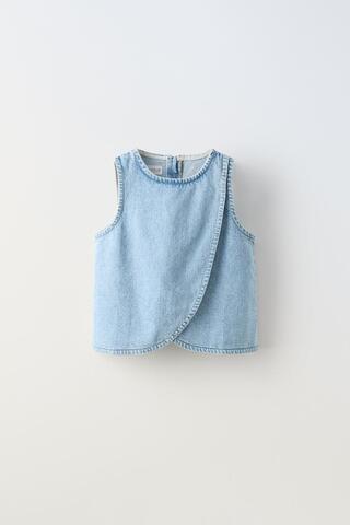 ZARA ДЖИНСОВЫЙ ТОП БЕЗ РУКАВОВ, СИНИЙ