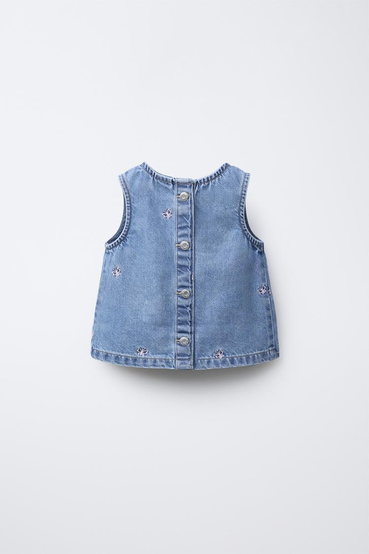 Топ из денима с круглым вырезом горловины и без рукавов. С застежкой на пуговицы сзади. С вышитыми деталями в виде бабочек.