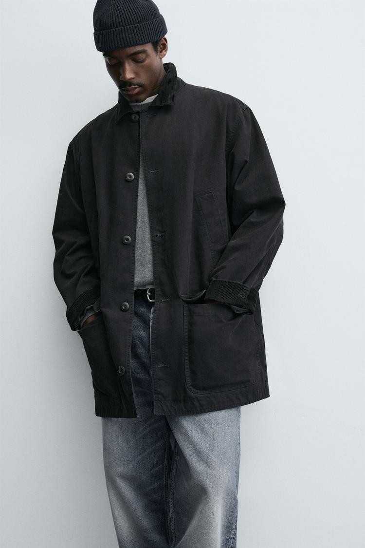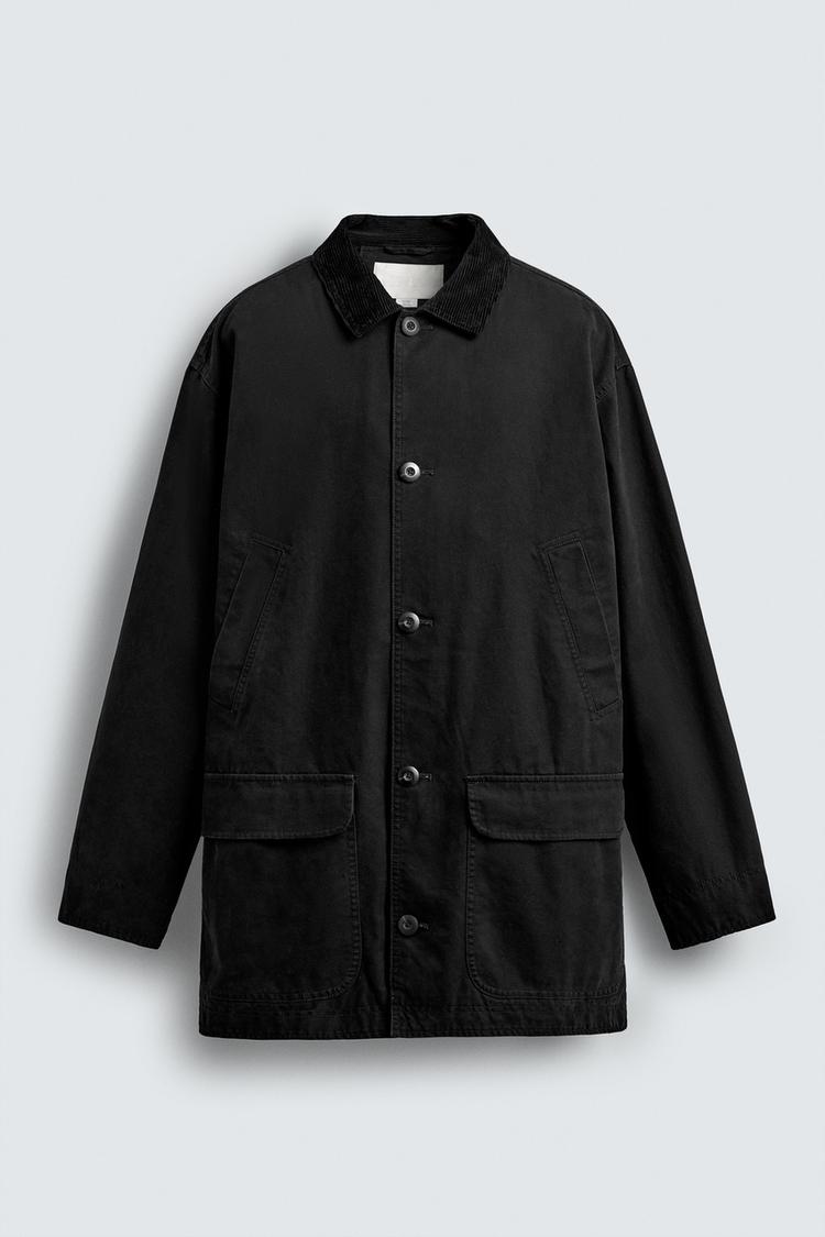 ZARA ДЖИНСОВЫЙ ТРЕНЧ С КОМБИНИРОВАННЫМ ВОРОТНИКОМ, ЧЕРНЫЙ
