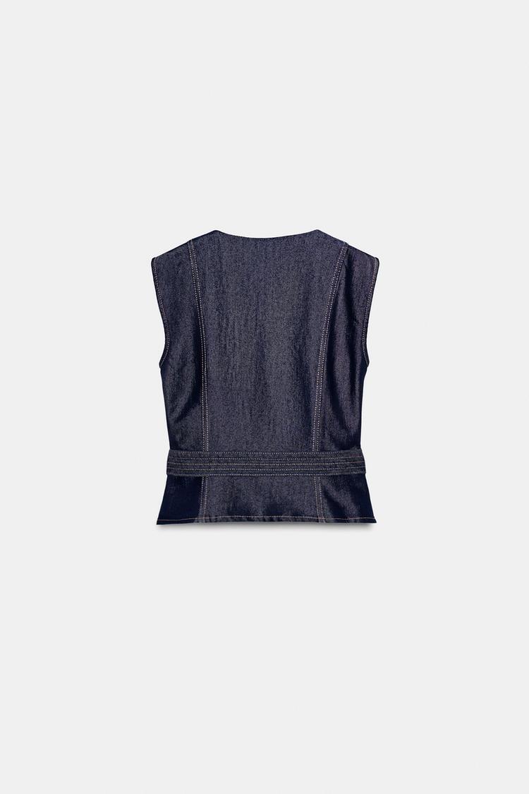 ZARA ДЖИНСОВЫЙ ЖИЛЕТ Z1975 С ПОЯСОМ, СИНИЙ