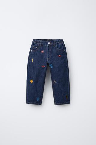 ZARA ДЖИНСЫ-БАГГИ С ВЫШИВКОЙ «ТАЧКИ: МОЛНИЯ МАККУИН» © DISNEY, СИНИЙ