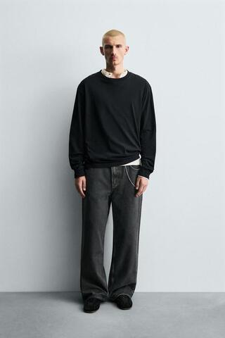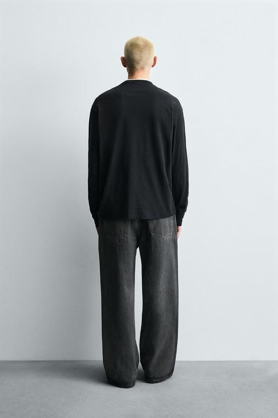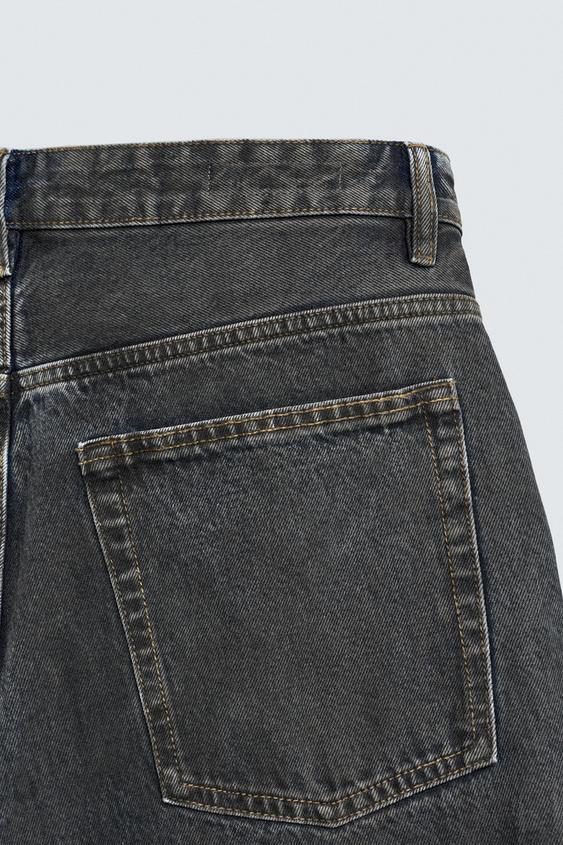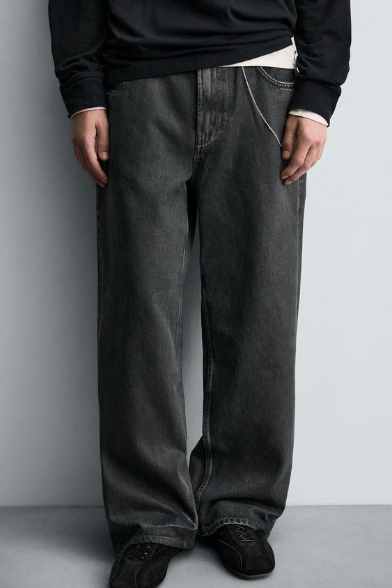 ZARA ДЖИНСЫ BAGGY FIT С ЭФФЕКТОМ ВОЩЕНИЯ, УГОЛЬНЫЙ