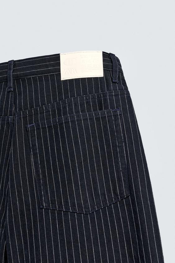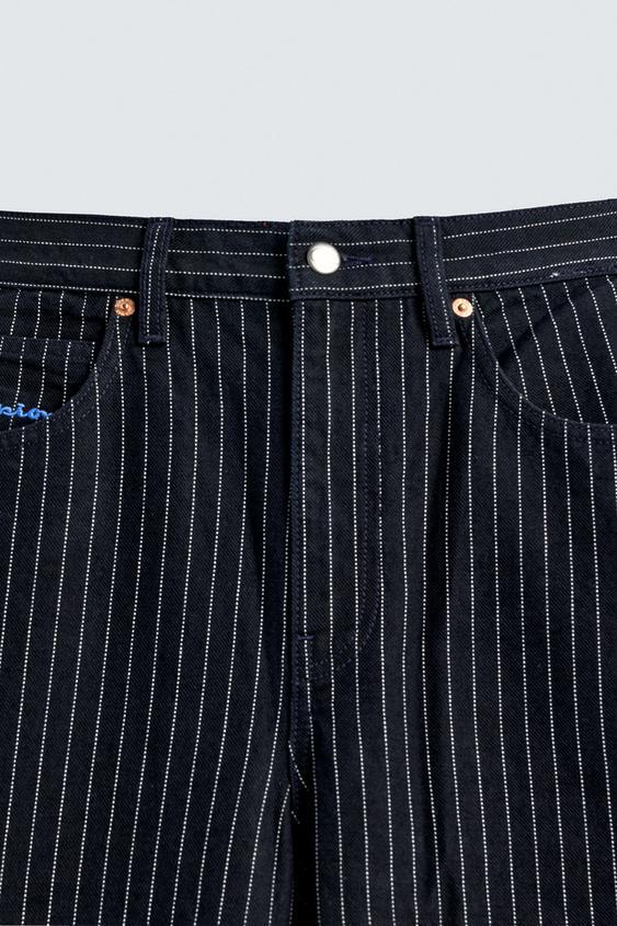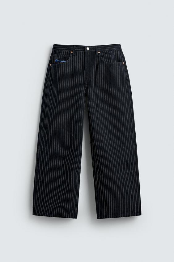 ZARA X CHAMPION ® ДЖИНСЫ BAGGY FIT В ПОЛОСКУ, СИНИЙ