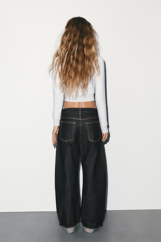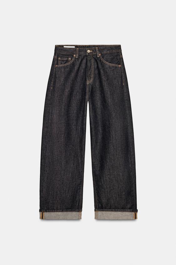 ZARA ДЖИНСЫ BAGGY FOLDED TRF СО СРЕДНЕЙ ПОСАДКОЙ, ТЕМНЫЙ ИНДИГО