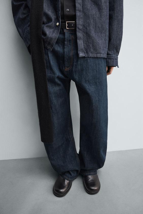 Джинсы свободного кроя из нестираного хлопкового денима. Это придает им жесткий вид во время первого использования, который со временем исчезает в процессе носки.